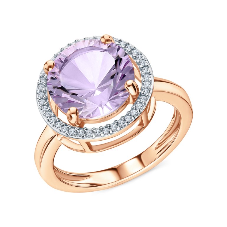 Кольцо с 1 аметистом светло-розовым, 3.24 карат;  фианитом бесцветным; Серебро 925 пробы.