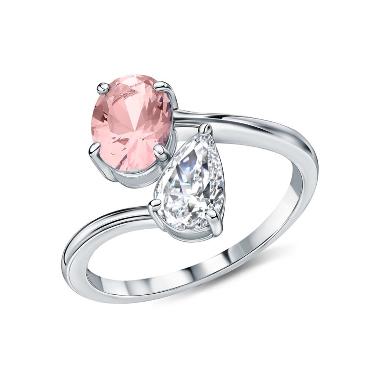 Кольцо, вставка: фианитом бесцветным;  фианит розовый; Серебро 925 пробы.