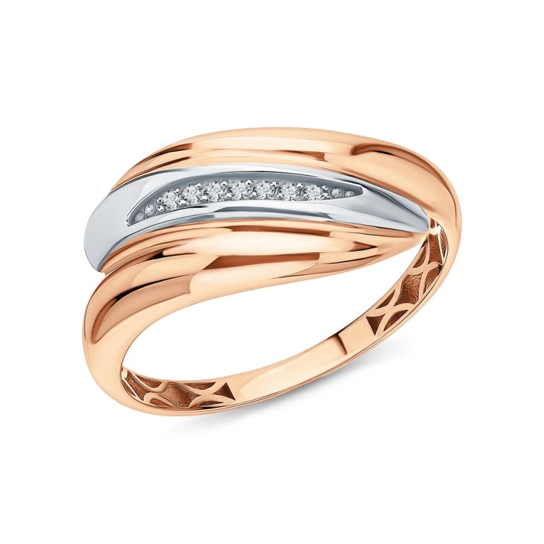Кольцо, вставка: фианит бесцветный; Розовое золото 585 пробы.