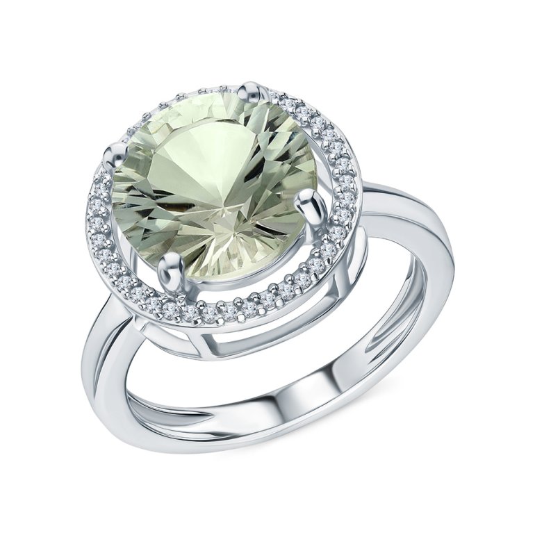 Кольцо, вставка: аметист зеленый;  фианитом бесцветным; Серебро 925 пробы.