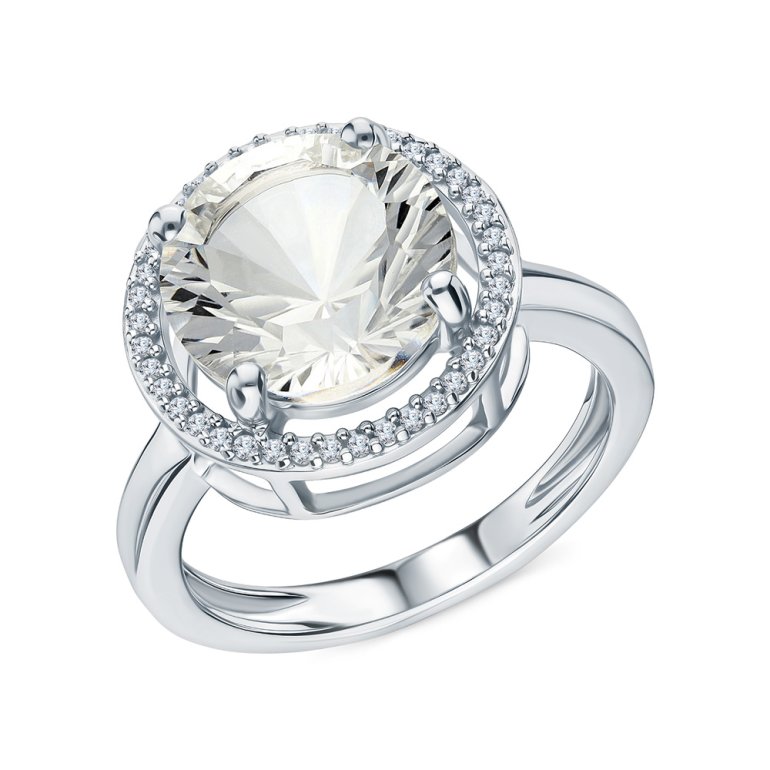 Кольцо, вставка: кварц бесцветный;  фианитом бесцветным; Серебро 925 пробы.