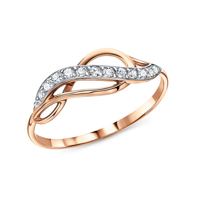 Кольцо, вставка: фианитом бесцветным; Розовое золото 585 пробы.