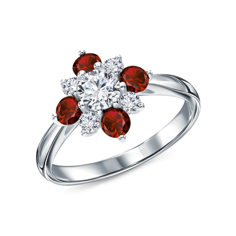 Серебряное кольцо с фианитами и гранатами природными