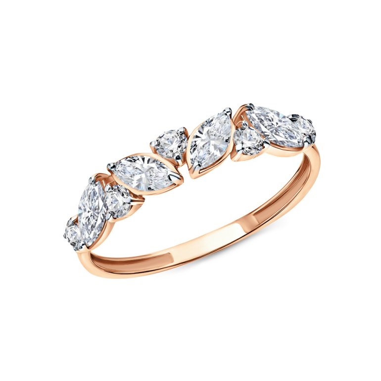 Кольцо, вставка: фианитом бесцветным; Розовое золото 585 пробы.