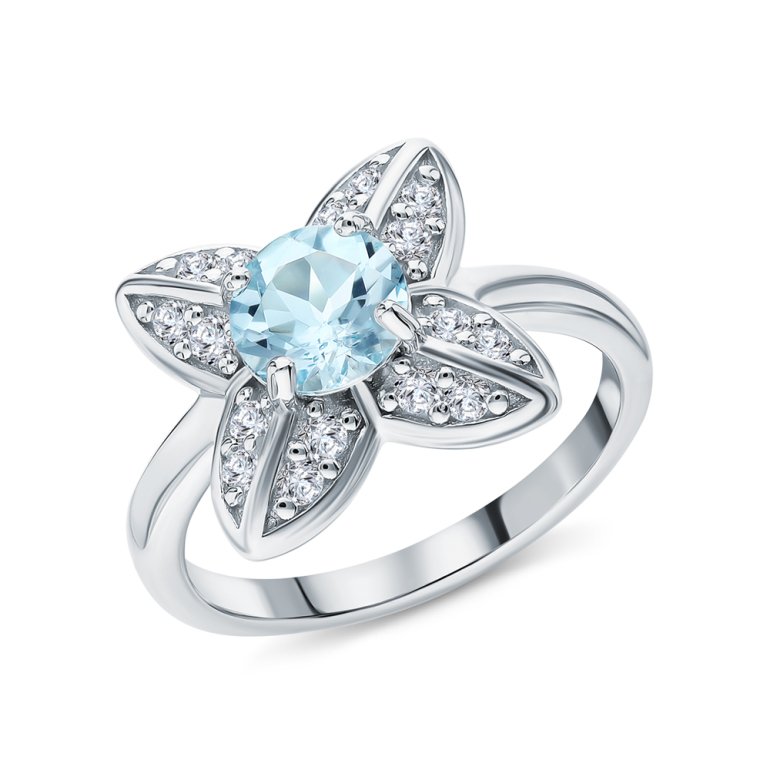 Кольцо с 1 топазом скай природным, 1. карат;  фианитом бесцветным; Серебро 925 пробы.