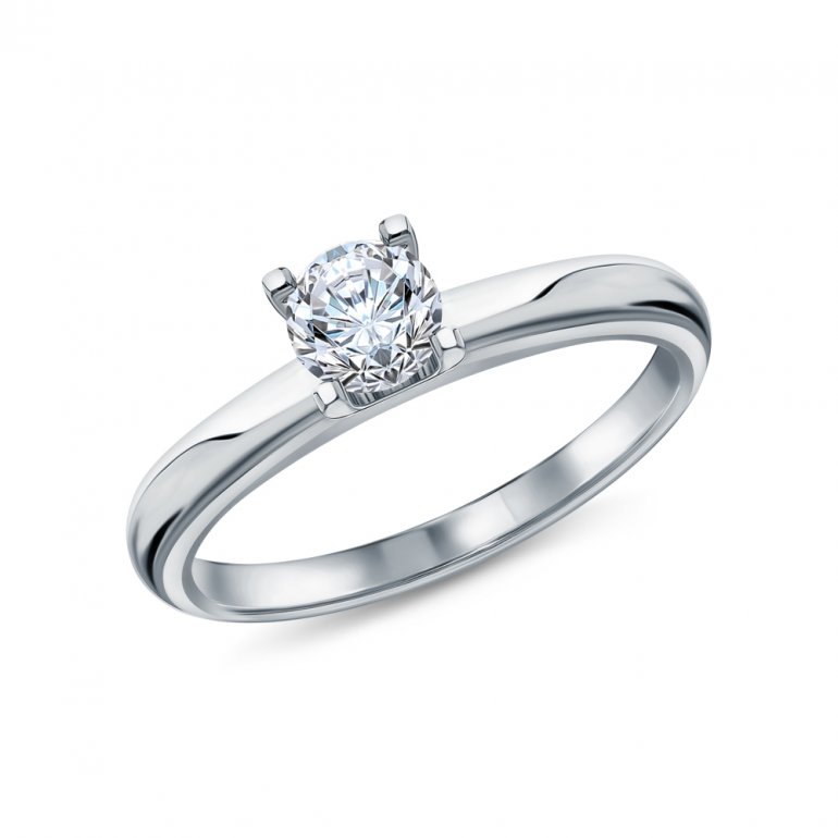 Кольцо с 1 бриллиантом, 0.407 карат, огранка круг 57 граней, цвет 4, чистота 7, тип огранки А; Белое золото 585 пробы.