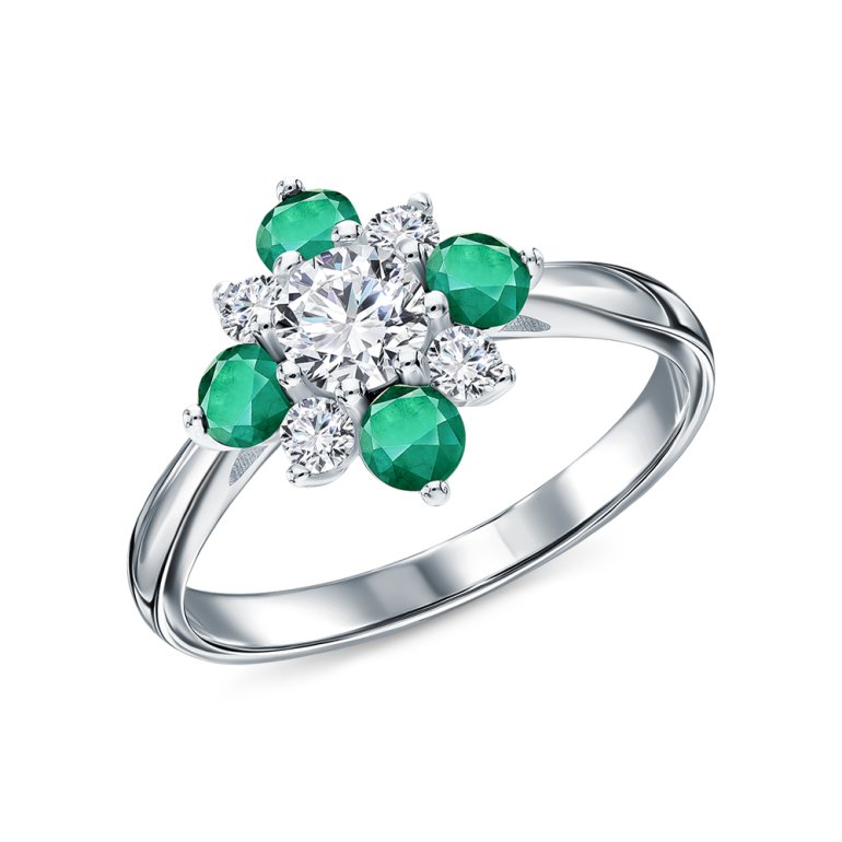 Серебряное кольцо с фианитами и агатами природными S42858-K9W-02 Кольца SUNLIGHT | V4.Ru: Маркетплейс