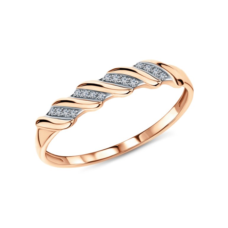 Кольцо с 16 бриллиантами, 0.054 карат, огранка круг 17 граней, цвет 2, чистота 2, тип огранки А; Розовое золото 585 пробы.