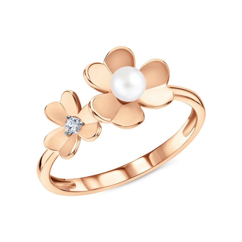 Золотое кольцо с жемчугом и фианитом 099698_01_01_005_0070* Кольца SUNLIGHT | V4.Ru: Маркетплейс