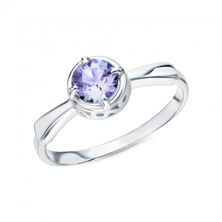 Кольцо с 1 танзанитом природным, 0.5 карат, тип огранки В; Серебро 925 пробы.