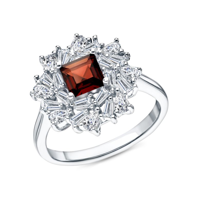 Серебряное кольцо с фианитами и гранатами природными S42672-K9W-01 Кольца SUNLIGHT | V4.Ru: Маркетплейс