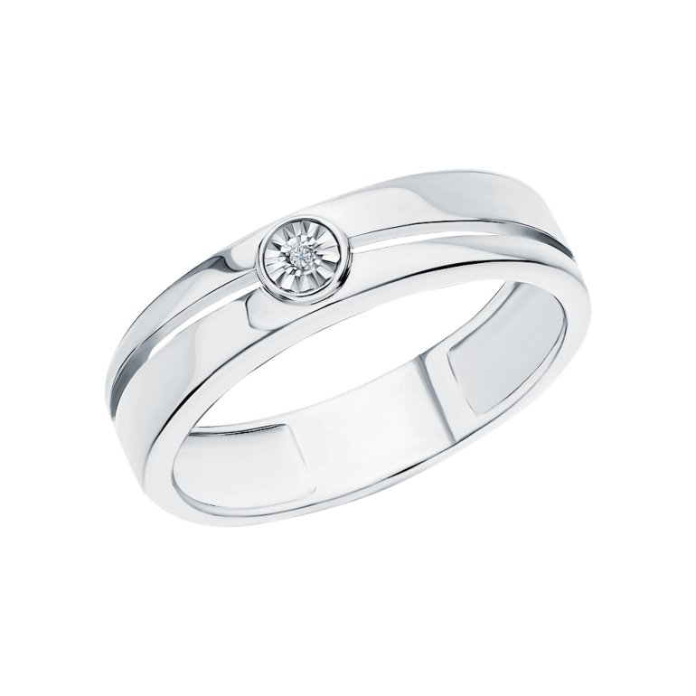 Кольцо с 1 бриллиантом природным, 0.004 карат, огранка круг 17 граней, цвет 2, чистота 4, тип огранки Б; Серебро 925 пробы.