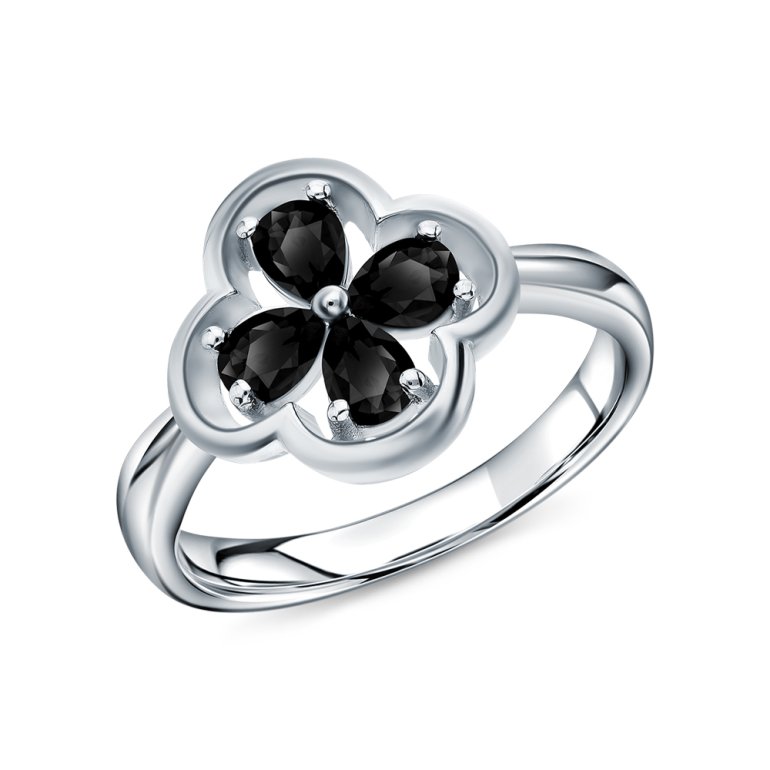 Кольцо с 4 агатами черными природными; Серебро 925 пробы.