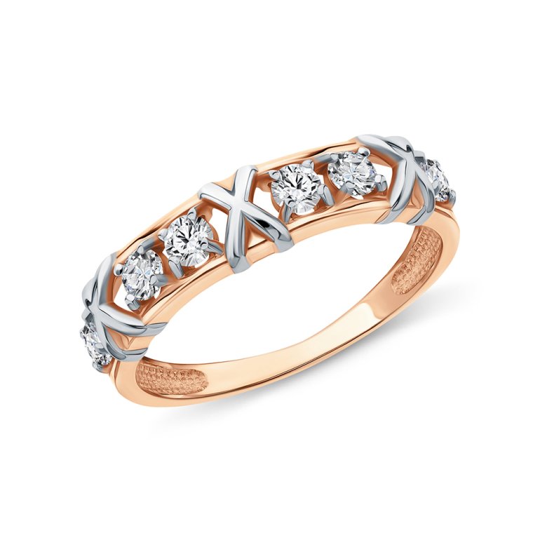 Кольцо, вставка: фианитом бесцветным; Розовое золото 585 пробы.