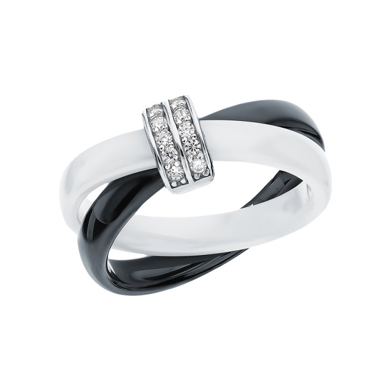 Кольцо, вставка: керамика белая;  керамика черная;  фианит; Серебро 925 пробы.
