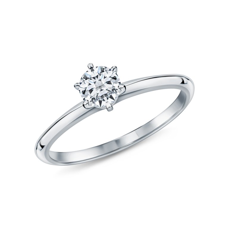 Кольцо с 1 бриллиантом, 0.408 карат, огранка круг 57 граней, цвет 4, чистота 7, тип огранки А; Белое золото 585 пробы.