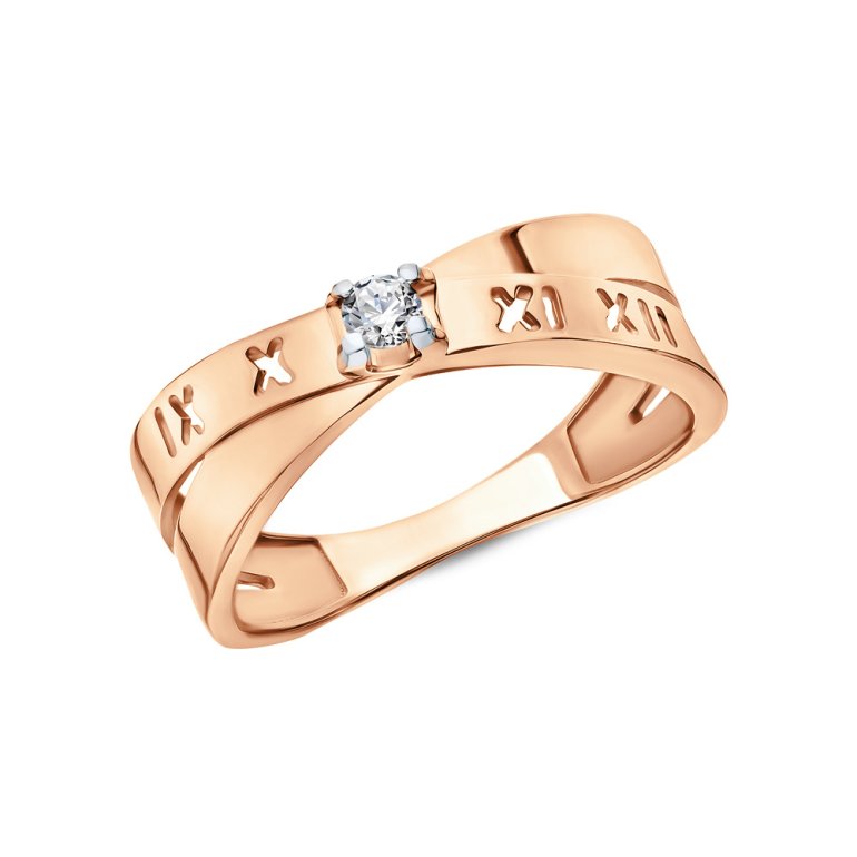 Кольцо, вставка: фианитом бесцветным; Розовое золото 585 пробы.