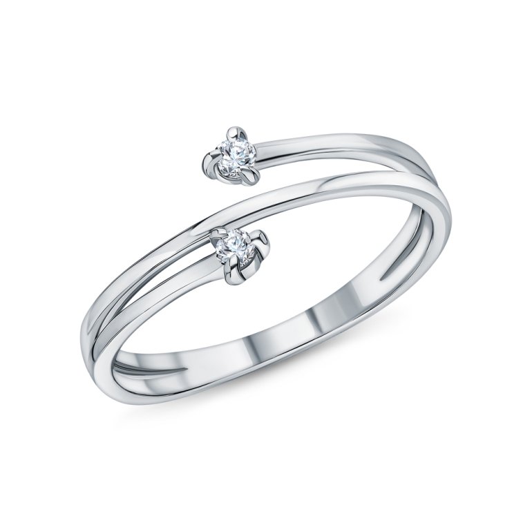 Кольцо с 2 бриллиантами выращенными, 0.07 карат, огранка круг 57 граней, цвет 2, чистота 5, тип огранки А; Серебро 925 пробы.