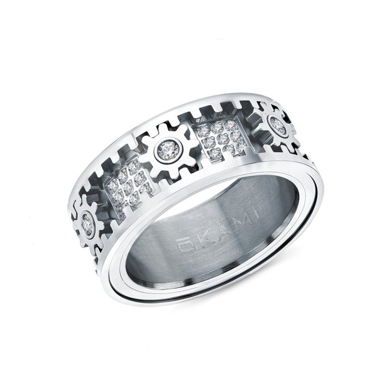Кольцо, вставка: фианитом бесцветным;  Сталь; Сталь