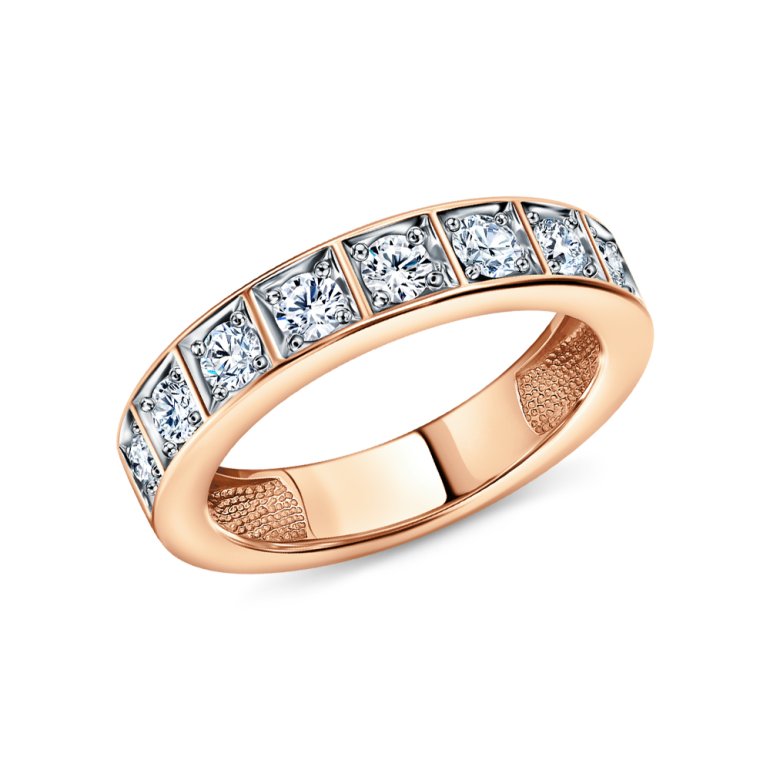 Кольцо с 8 бриллиантами, 0.628 карат, огранка круг 57 граней, цвет 4, чистота 6, тип огранки А; Розовое золото 585 пробы.