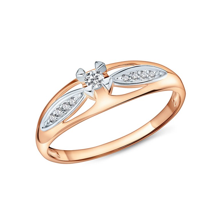 Кольцо, вставка: фианитом бесцветным;  фианитом бесцветным; Розовое золото 585 пробы.