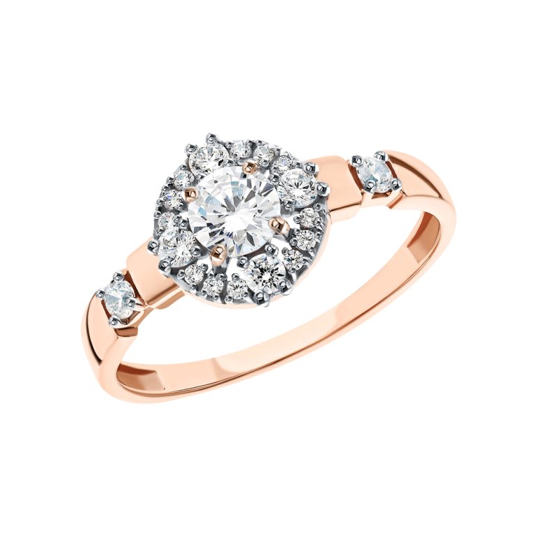 Кольцо, вставка: фианитом бесцветным; Розовое золото 585 пробы.