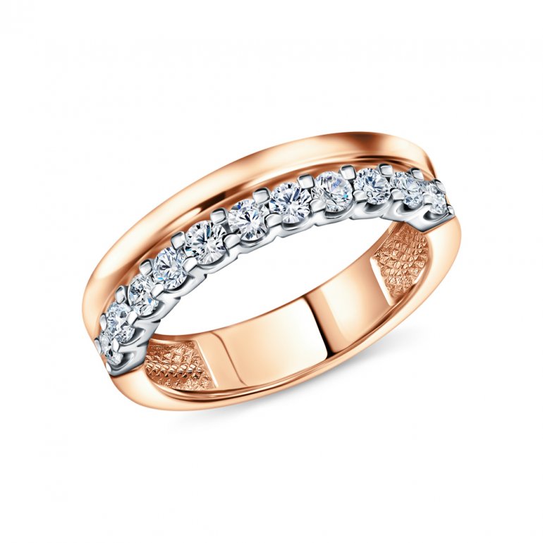 Кольцо с 11 бриллиантами, 0.488 карат, огранка круг 57 граней, цвет 4, чистота 6, тип огранки А; Розовое золото 585 пробы.