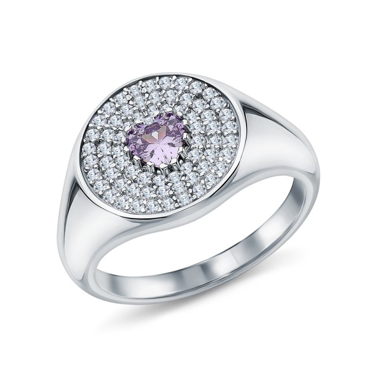 Кольцо, вставка: фианит фиолетовый;  фианитом бесцветным; Серебро 925 пробы.
