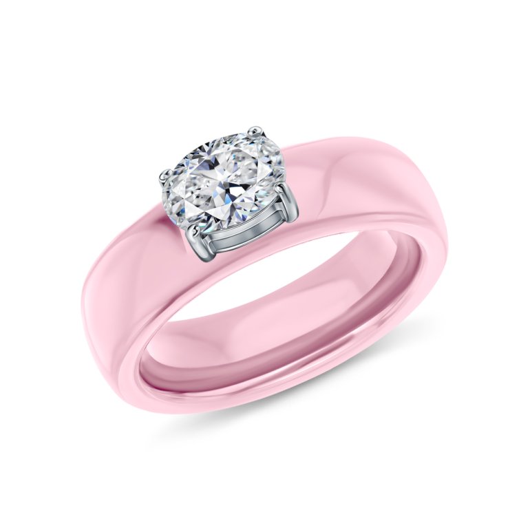 Кольцо, вставка: фианитом бесцветным;  керамика розовая;  Сталь;