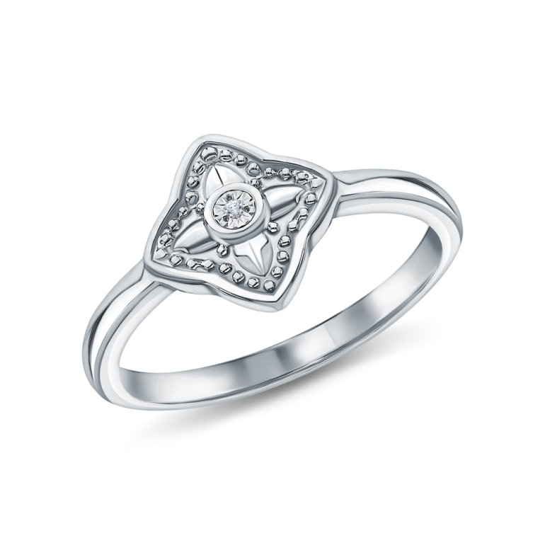 Кольцо с 1 бриллиантом природным, 0.004 карат, огранка круг 17 граней, цвет 2, чистота 4, тип огранки Б; Серебро 925 пробы.