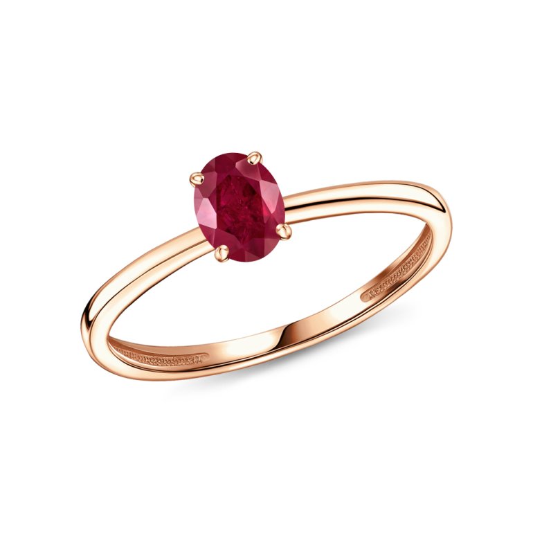 Кольцо с 1 рубином природным, 0.555 карат, цвет 2, чистота 2, тип огранки Б; Розовое золото 585 пробы.