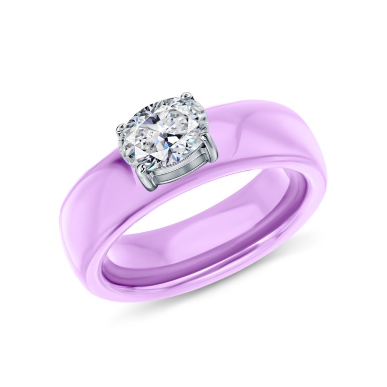 Кольцо, вставка: фианитом бесцветным;  керамика сиреневая;  Сталь;