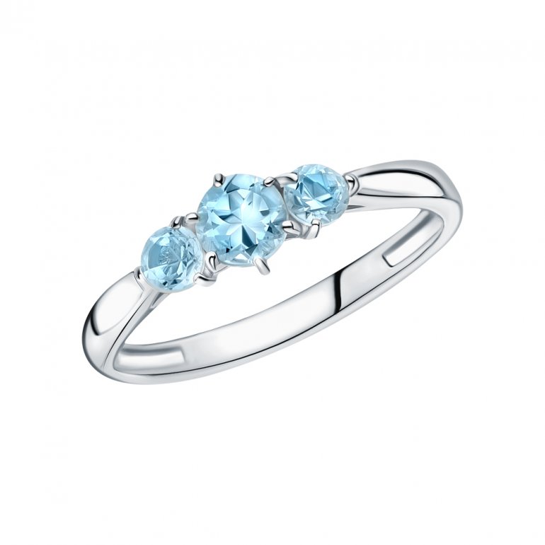 Кольцо с 1 топазом скай, 0.609 карат;2 топазами скай, 0.422 карат; Серебро 925 пробы.