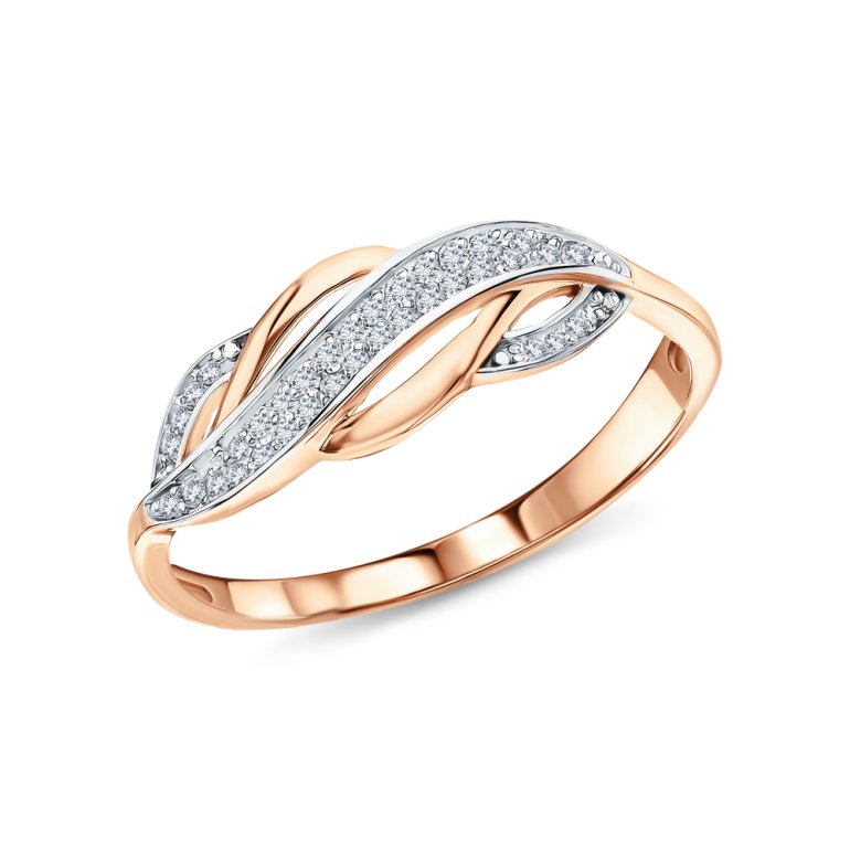Кольцо с 36 бриллиантами, 0.075 карат, огранка круг 17 граней, цвет 2, чистота 2, тип огранки А; Розовое золото 585 пробы.
