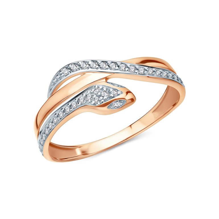Кольцо, вставка: фианитом бесцветным; Розовое золото 585 пробы.