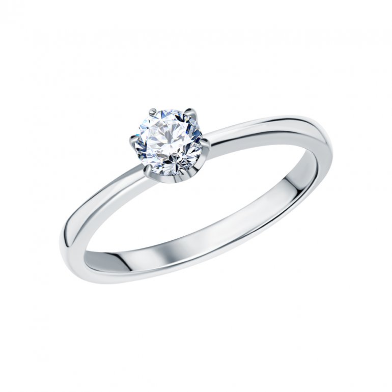 Кольцо с 1 бриллиантом природным, 0.26 карат, огранка круг 57 граней, цвет 4, чистота 6, тип огранки А; Белое золото 585 пробы.