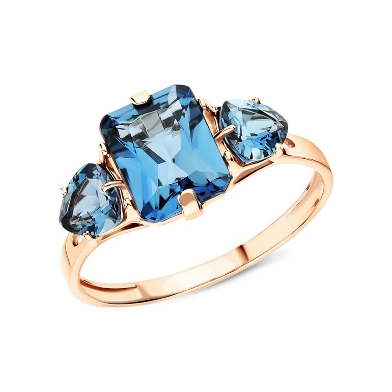 Кольцо с 1 топазом лондон природным, 2.427 карат, тип огранки Б; 2 топазами лондон природными, 0.963 карат, тип огранки Б; Розовое золото 585 пробы.