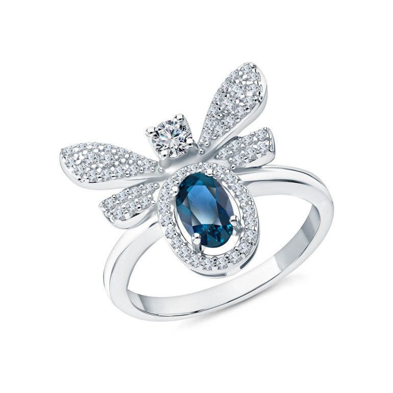 Кольцо, вставка: топаз лондон природный;  фианитом бесцветным; Серебро 925 пробы.