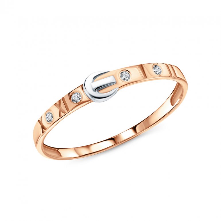 Кольцо, вставка: фианитом бесцветным; Розовое золото 375 пробы.