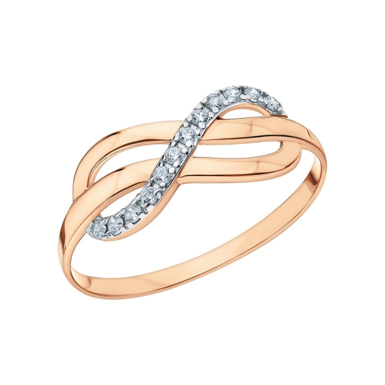 Кольцо, вставка: фианит бесцветный; Розовое золото 585 пробы.