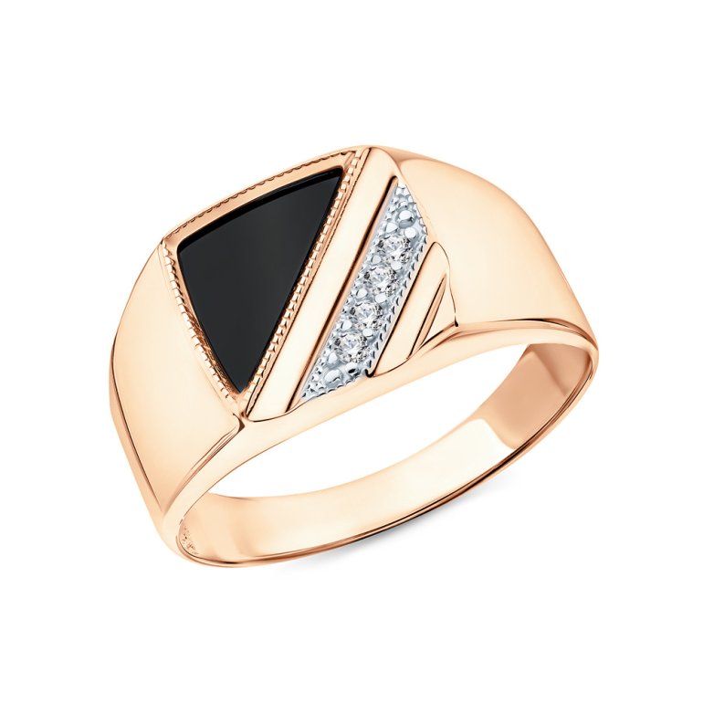 Кольцо, вставка: фианитом бесцветным;  черным фианитом; Розовое золото 585 пробы.