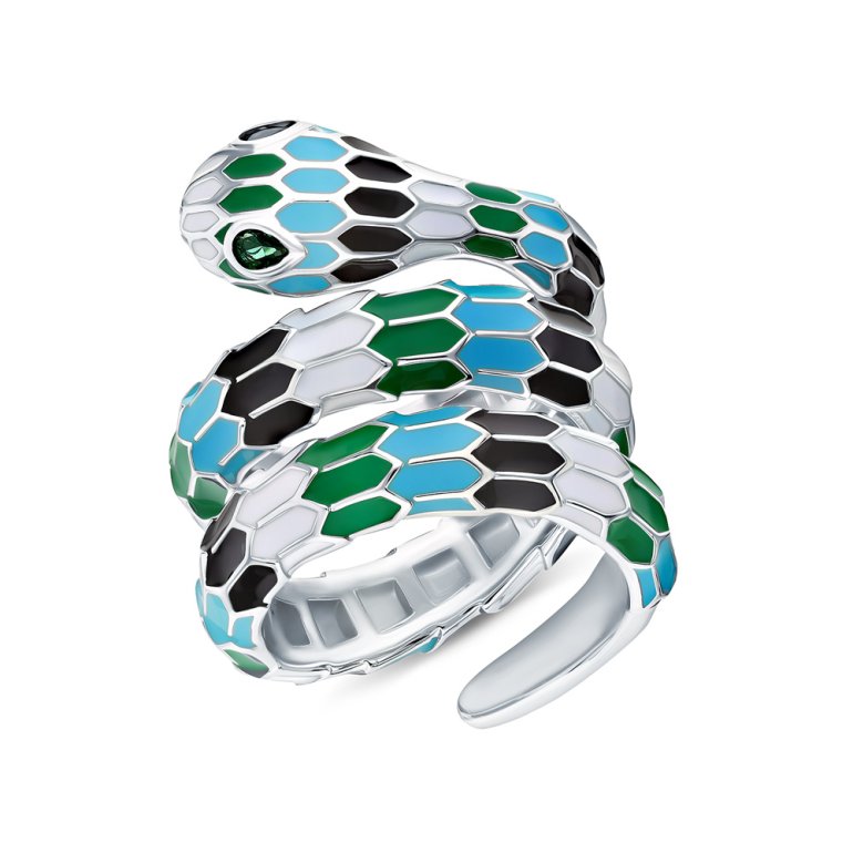 Кольцо, вставка: эмаль микс;  фианит зеленый; Серебро 925 пробы.