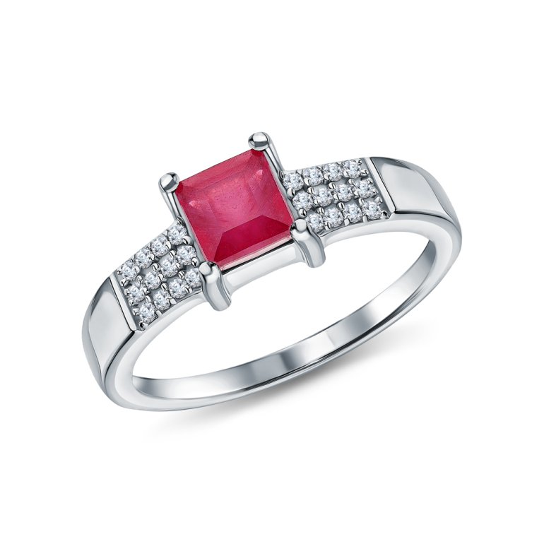 Серебряное кольцо с фианитами и рубинами природными S42729-K9W-02 Кольца SUNLIGHT | V4.Ru: Маркетплейс