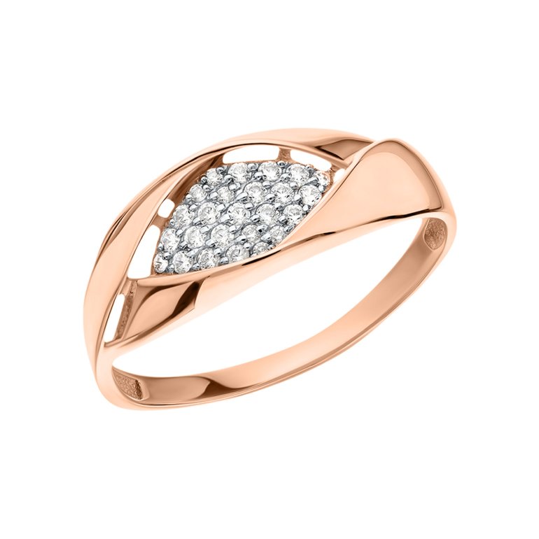 Кольцо, вставка: фианит бесцветный; Розовое золото 585 пробы.