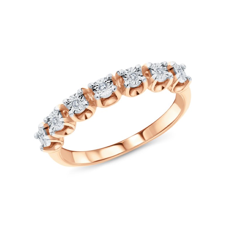 Кольцо с 7 бриллиантами природными, 0.025 карат, огранка круг 57 граней, цвет 4, чистота 5, тип огранки А; Розовое и белое золото 585 пробы.