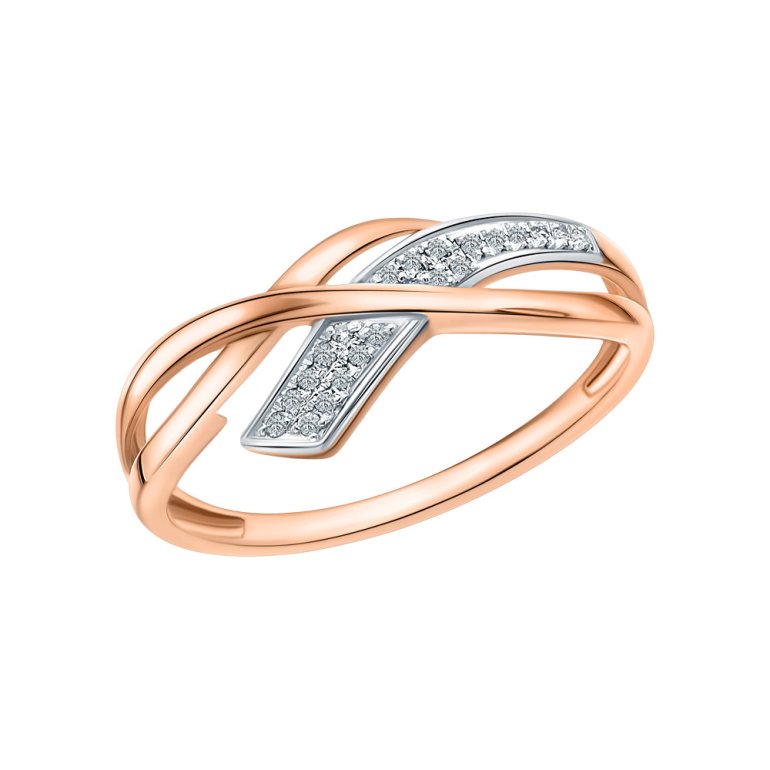 Кольцо с 21 бриллиантом, 0.038 карат, огранка круг 17 граней, цвет 2, чистота 2, тип огранки Б; Розовое золото 585 пробы.