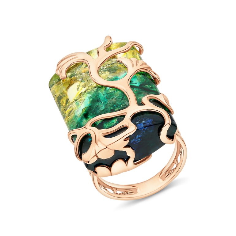 Кольцо с 1 янтарем, тип огранки Б; Серебро 925 пробы.