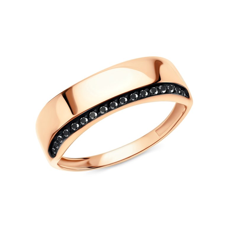 Кольцо, вставка: черным фианитом; Розовое золото 585 пробы.