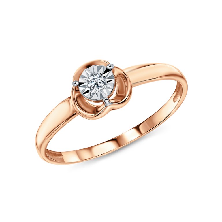 Кольцо с 1 бриллиантом природным, 0.028 карат, огранка круг 57 граней, цвет 3, чистота 6, тип огранки А; Розовое и белое золото 585 пробы.