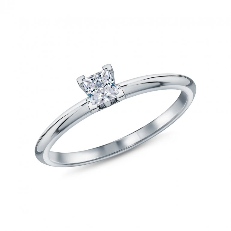 Кольцо с 1 бриллиантом, 0.235 карат, огранка принцесса 65 граней, цвет 3, чистота 6, тип огранки А; Платина 950 пробы.